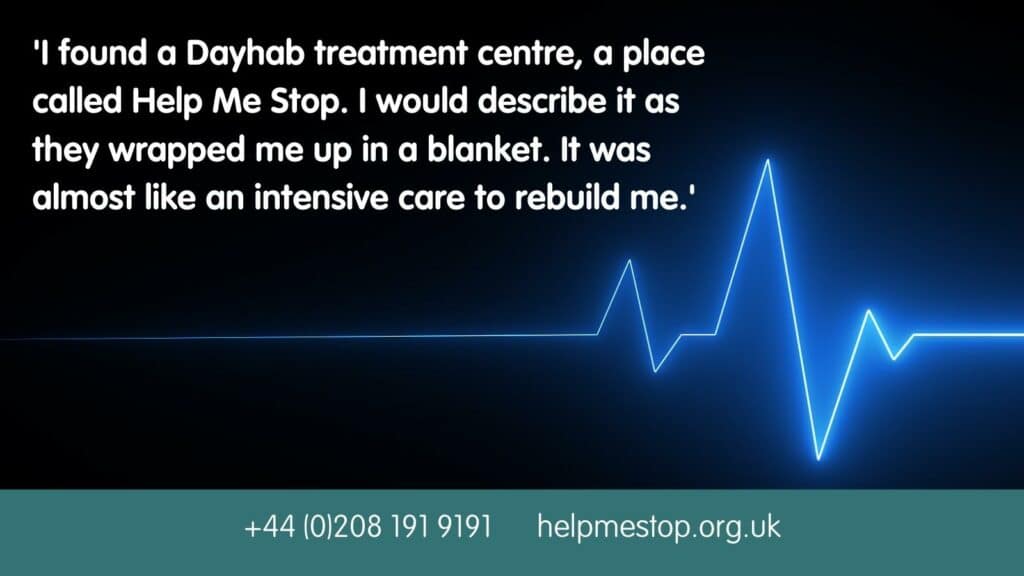 ‘I reached what I know as a rock bottom, and that rock bottom was a place where I just needed to seek help. And that was where I was fortunate enough to find a Dayhab treatment centre, a place called Help Me Stop. I would describe it as they wrapped me up in a blanket. It was almost like an intensive care to rebuild me.’